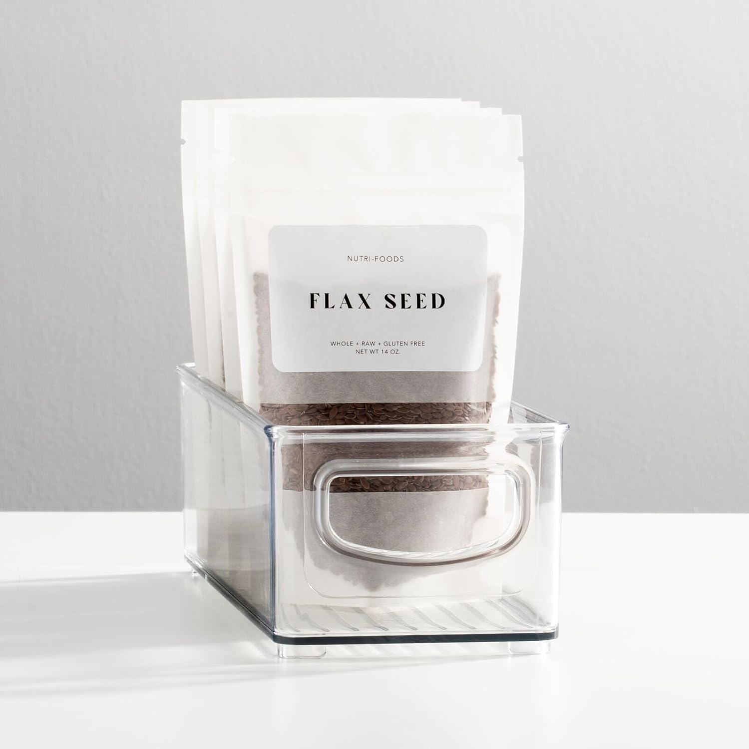 Contenedores portátiles, apilables y transparentes para maximizar espacio en refrigerador, congelador, alacena, estantes o cajones. Ideales para botellas, bolsas, snacks, secos y más.