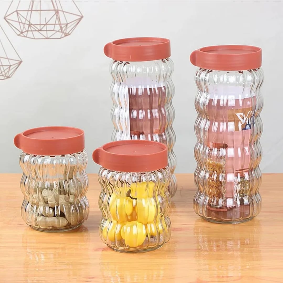 Un set completo y moderno: frascos transparentes con tapas herméticas para organizar tu cocina y conservar tus alimentos con estilo.